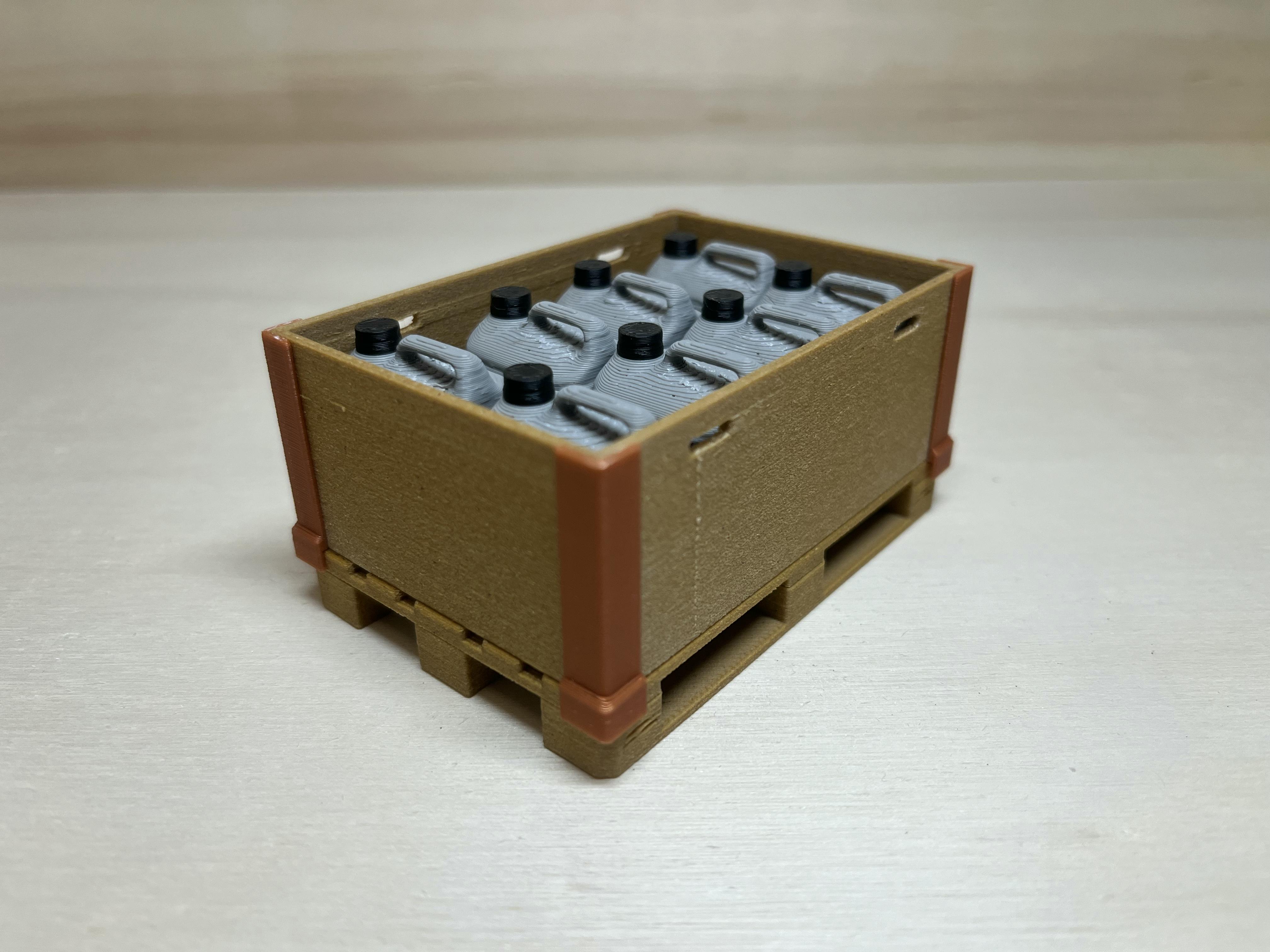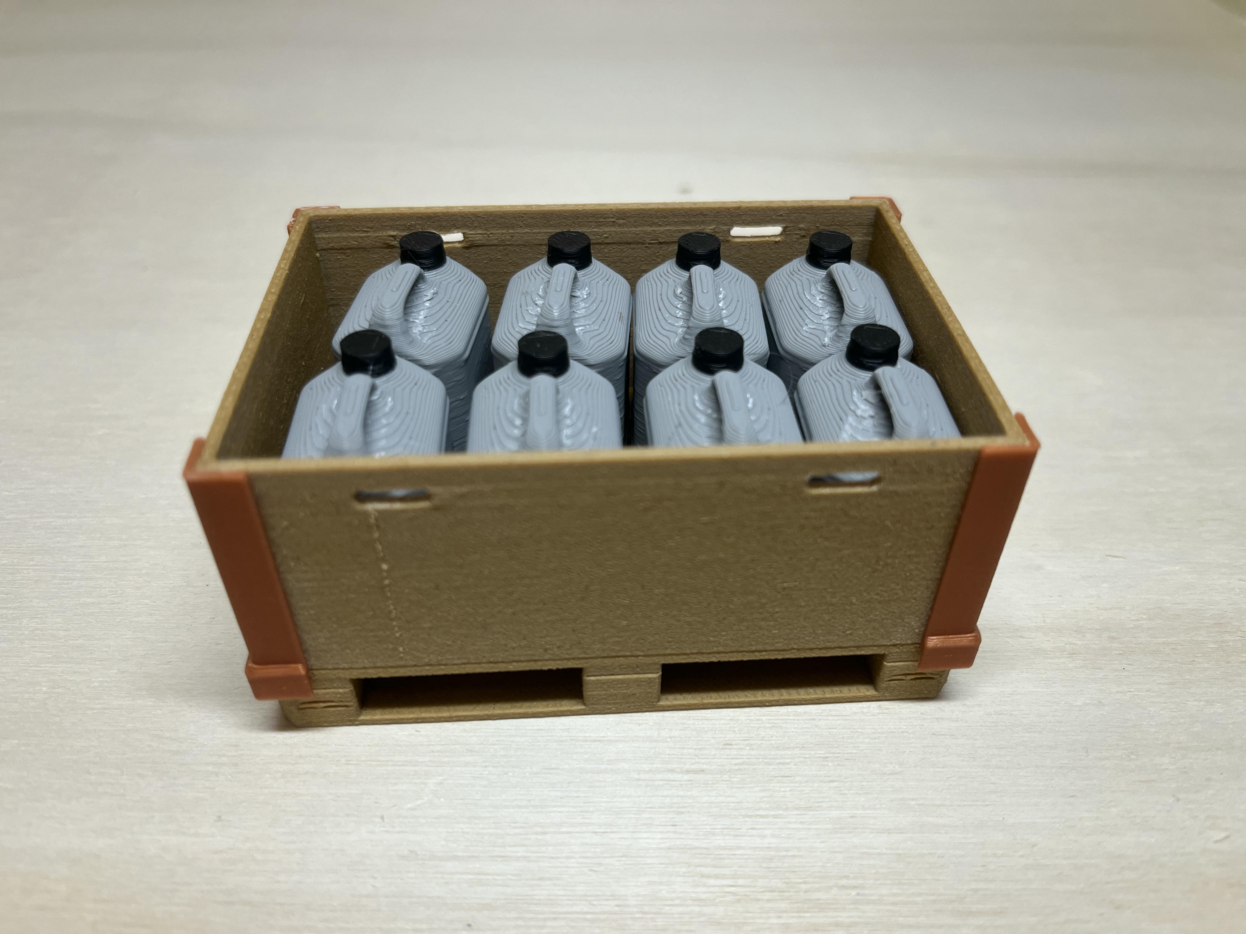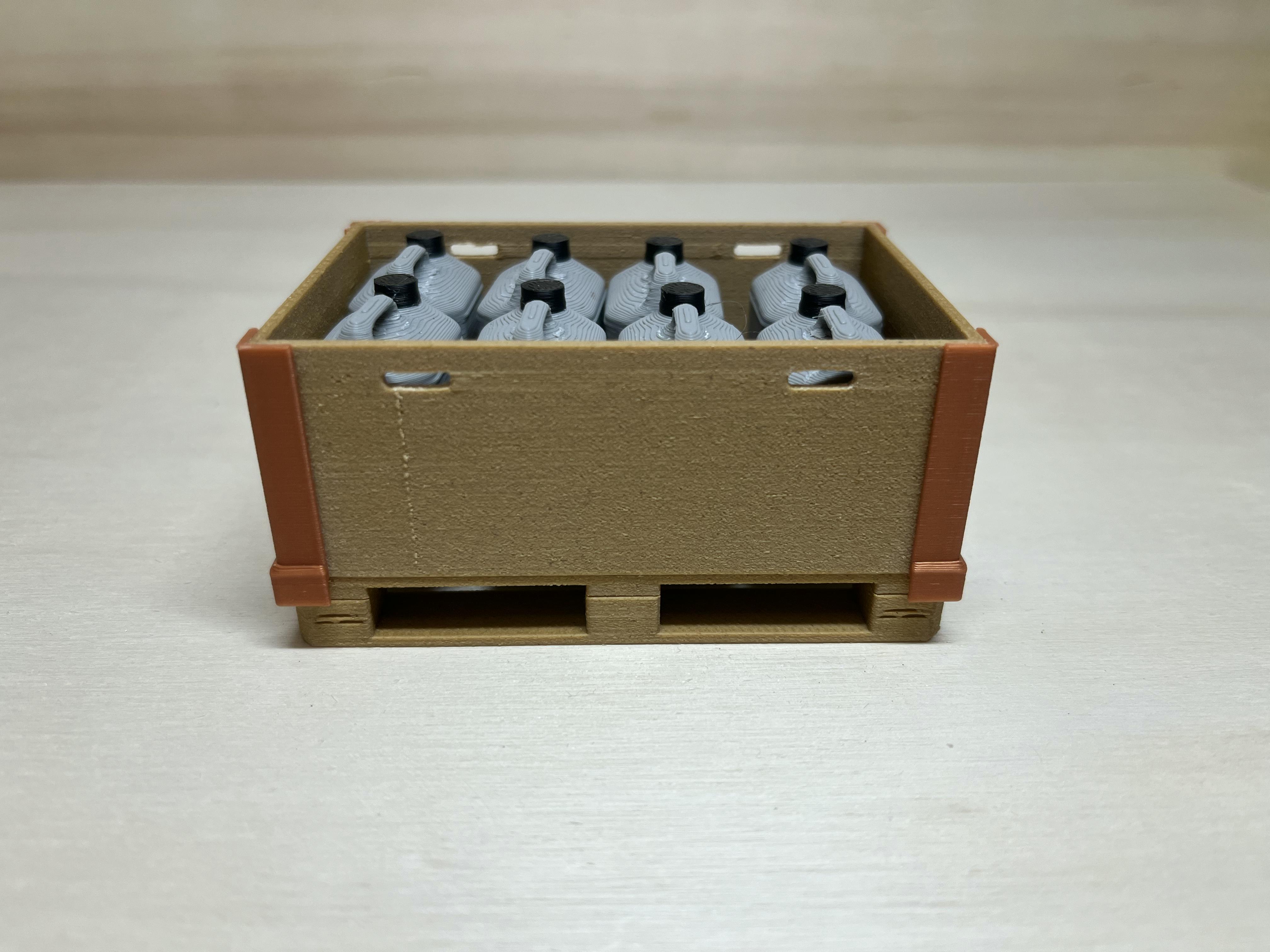 Palette mit Aufsatzrahmen, 8x Kanister