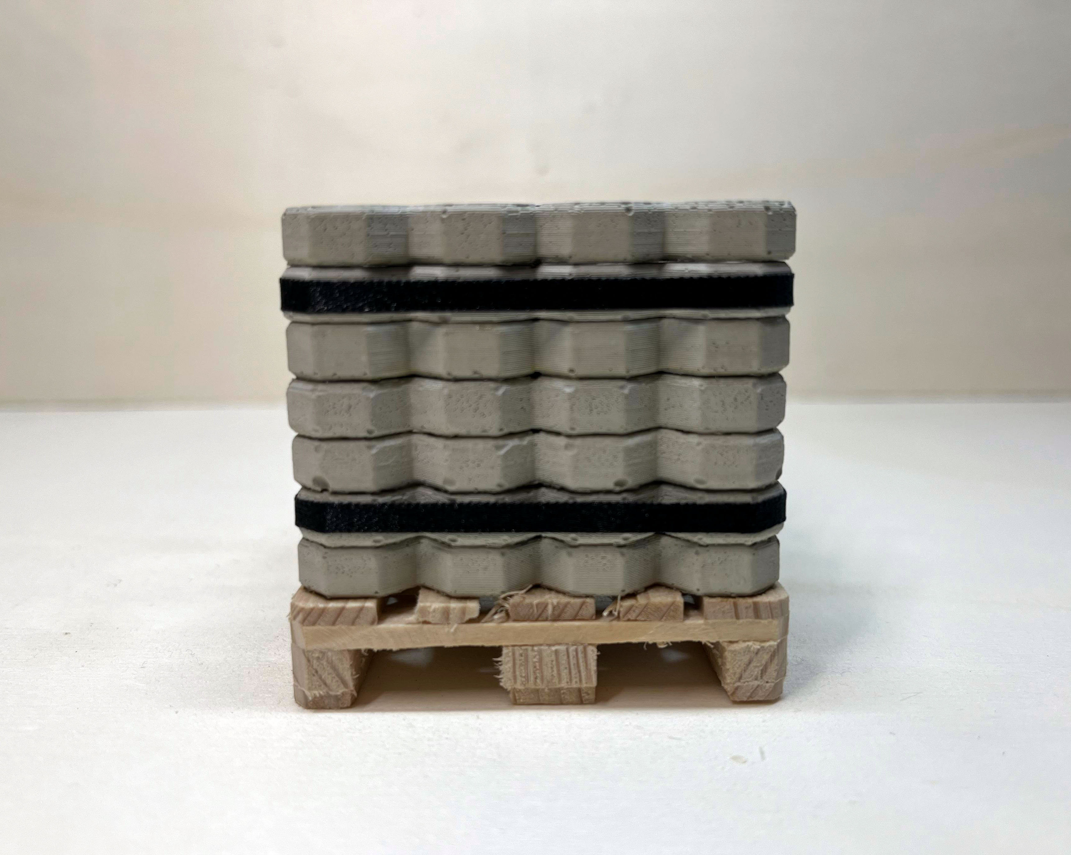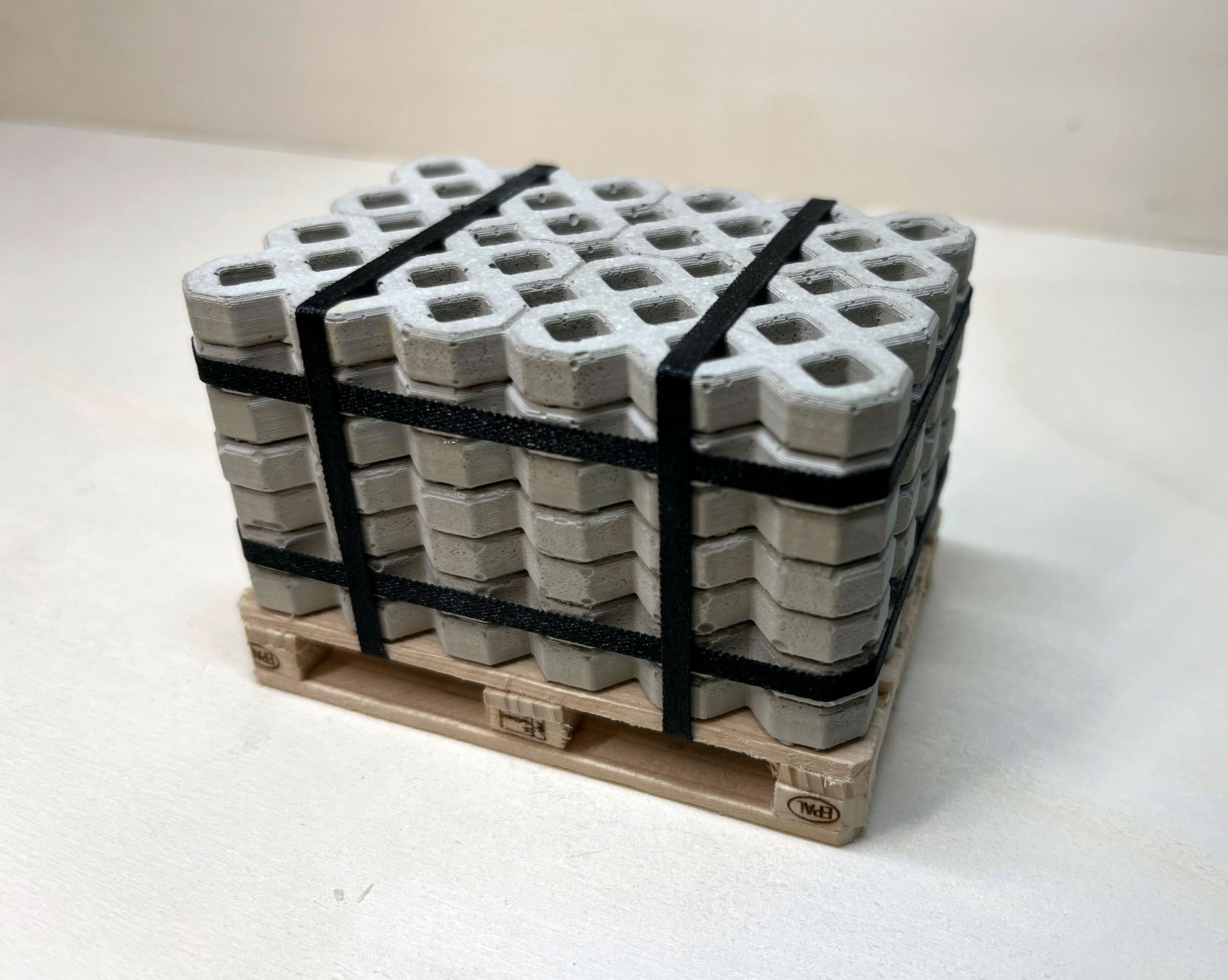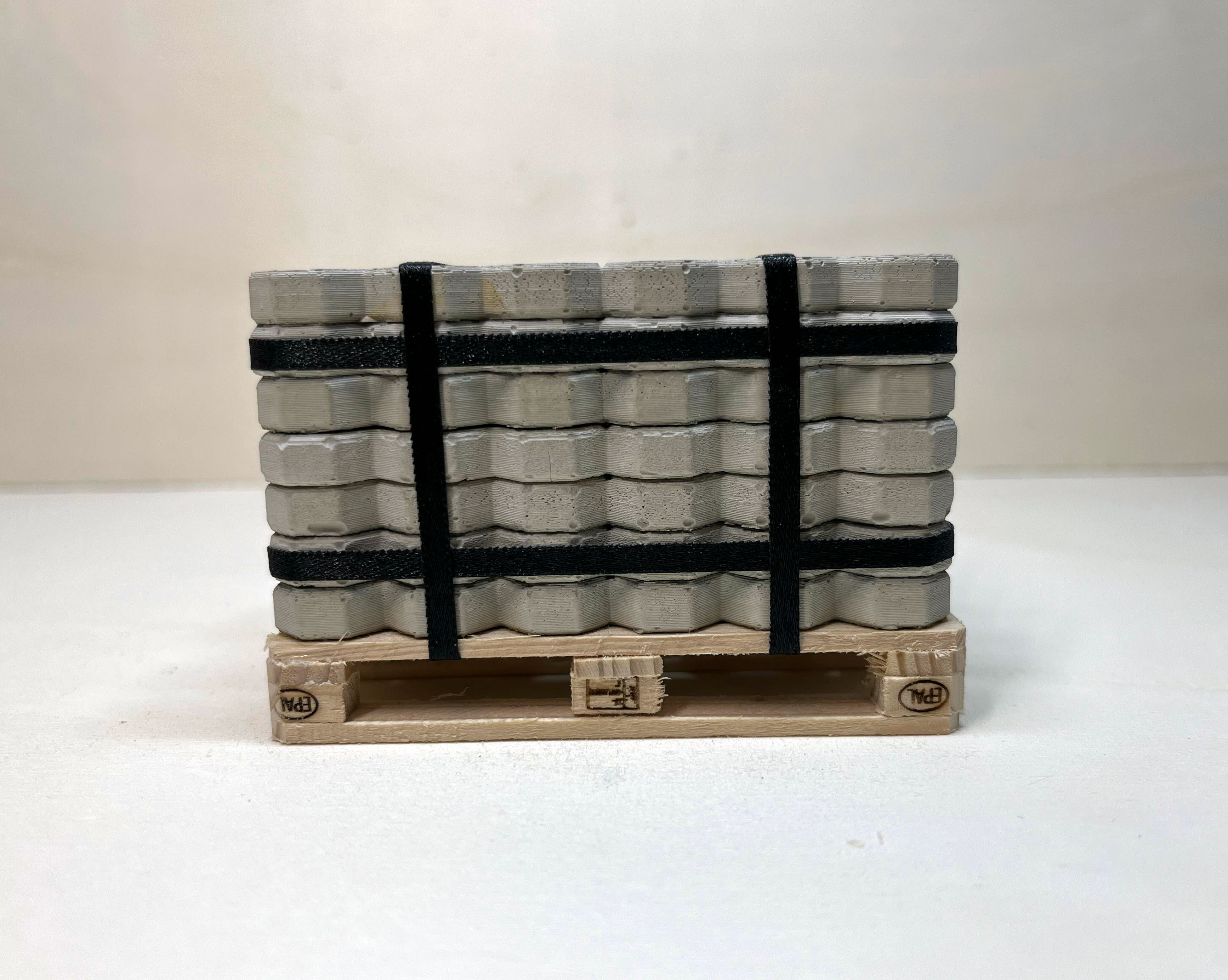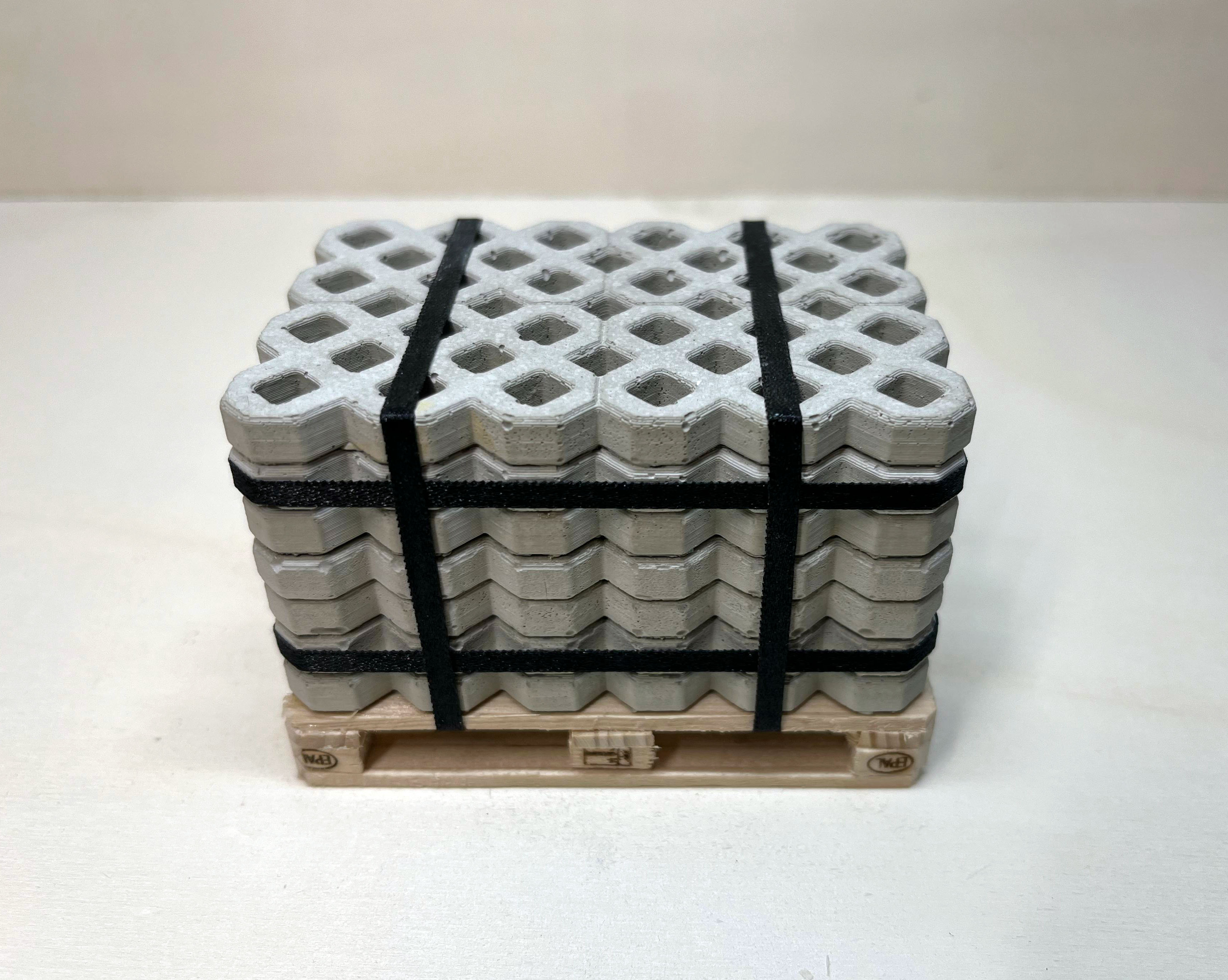 Gestapelte Rasengitterplatten aus Beton auf einer Euro-Palette.