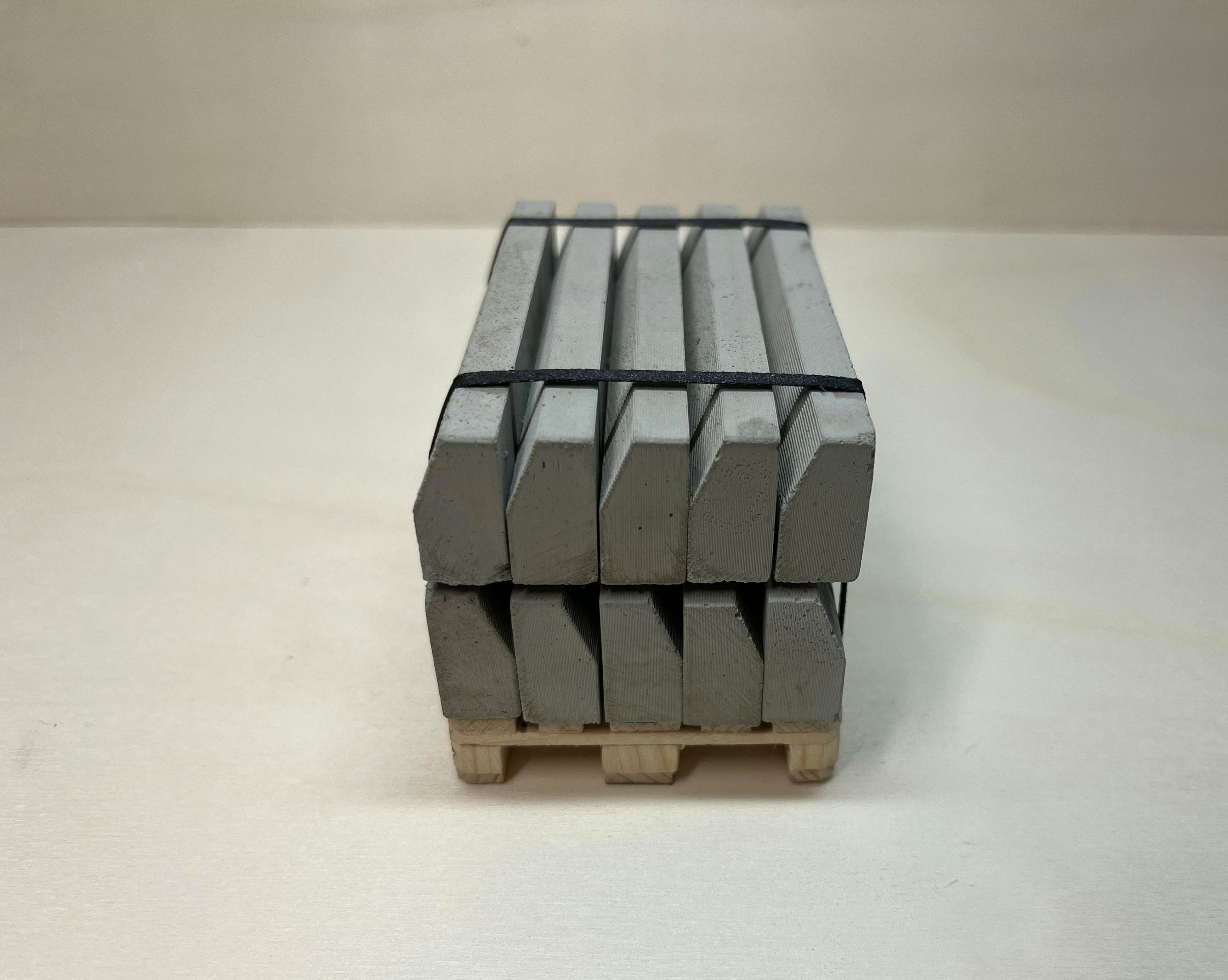 Gestapelte Randsteine/Bordsteine aus Beton auf einer Euro-Palette.